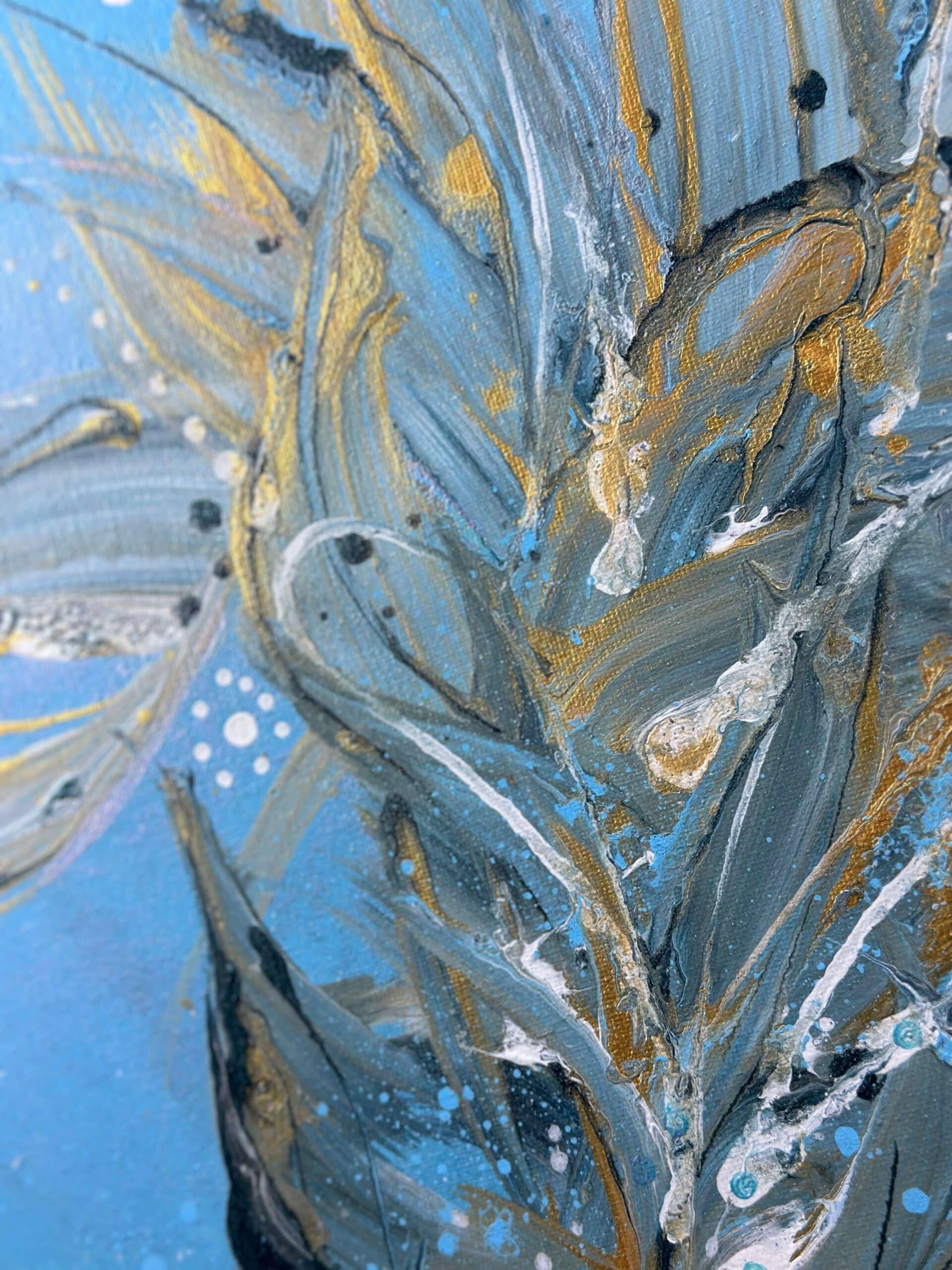 V samém středu tohoto nádherného obrazu zažíváme extázi, což je takový pocit nesmírné radosti a štěstí. Ta se promítá v jasných barvách bílé, zlaté a stříbrné, jako by nás vnitřně osvětlovala a naplňovala světlem a láskou. Azurová extáze je jako malý kousek ráje na zemi, který nám přináší útěchu a klid a nechává nás snít o krásách přírody a pocitech štěstí.