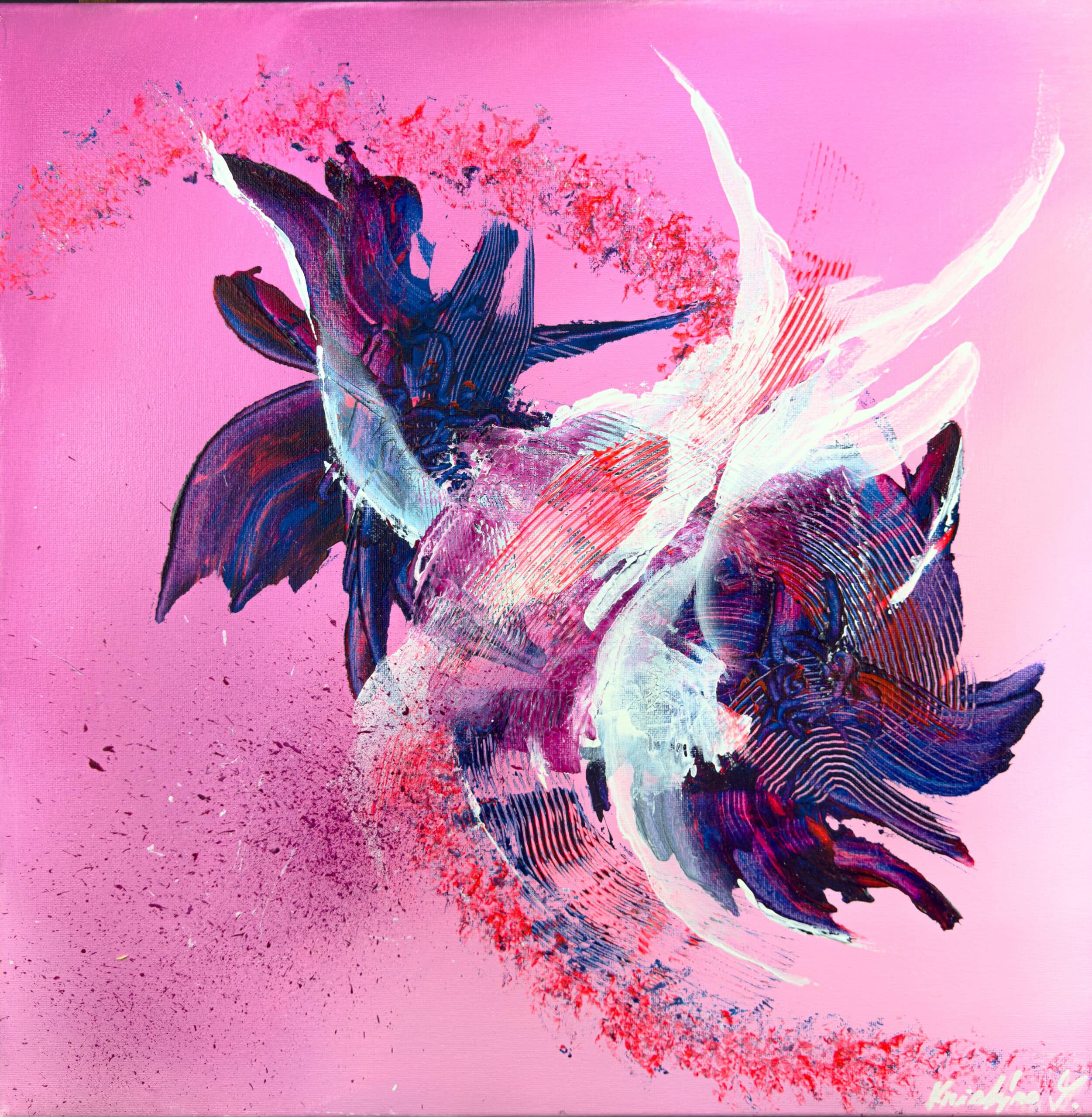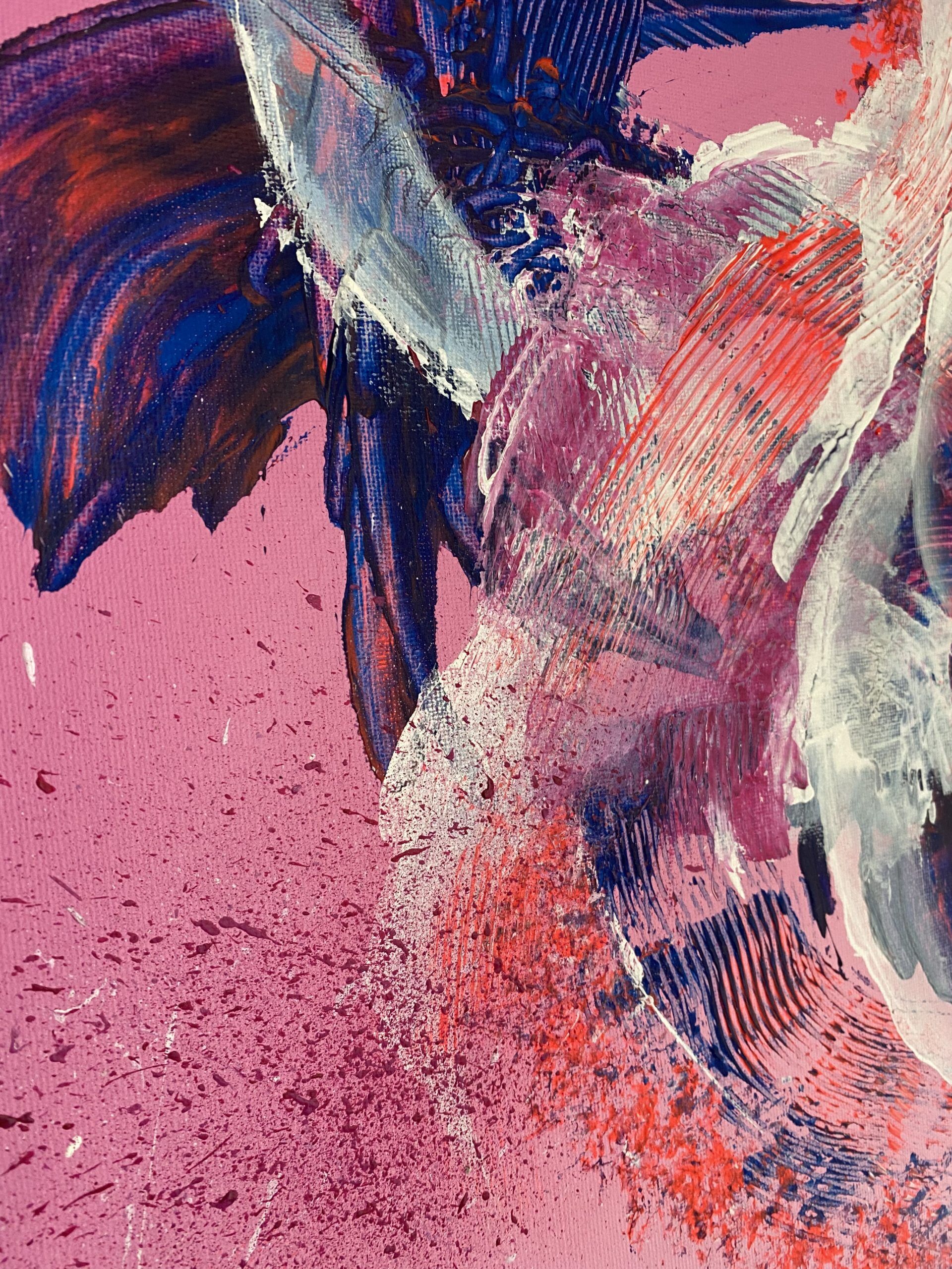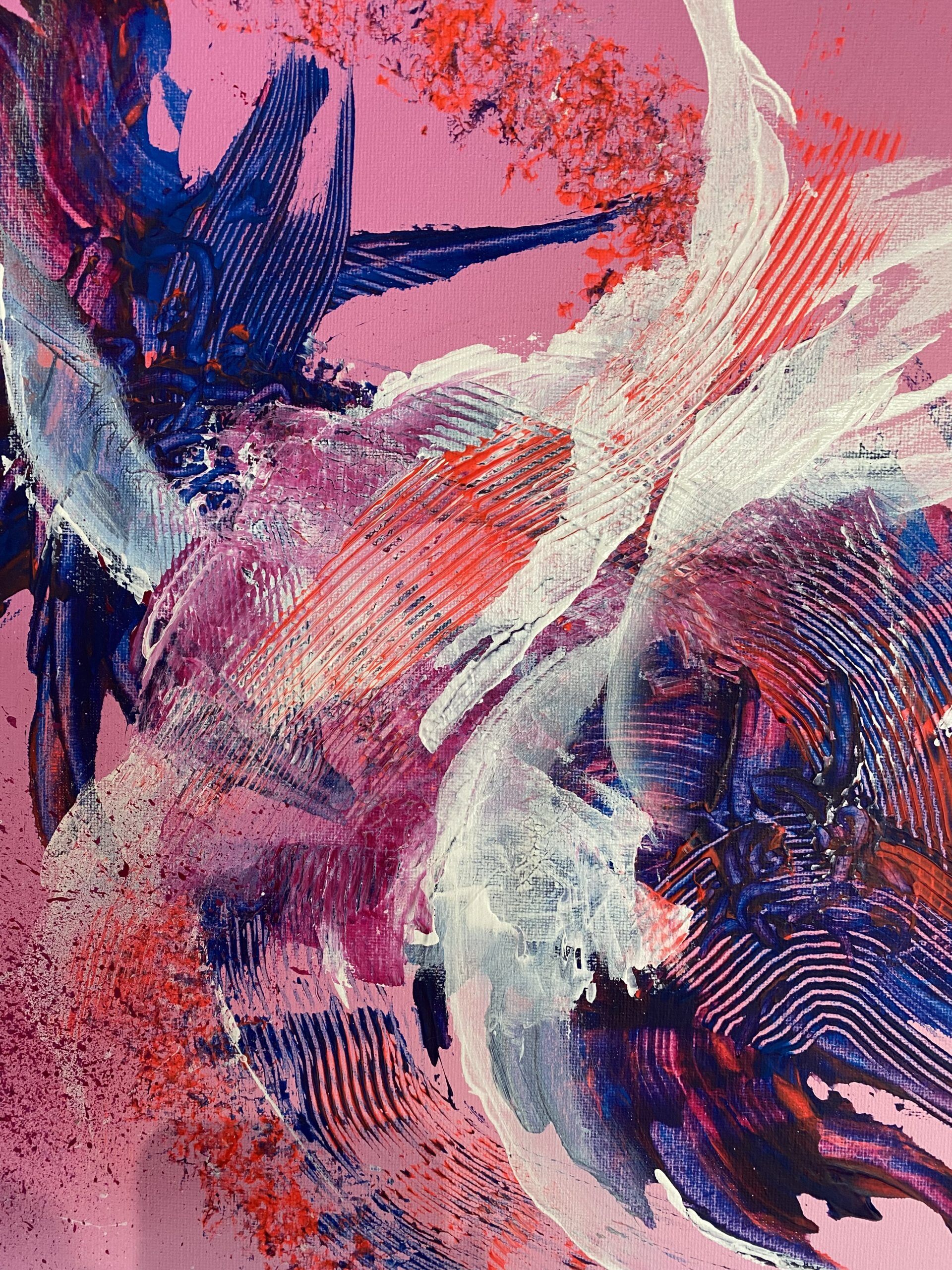 Ručně malovaný abstraktní obraz pod názvem: Lutýna. Obraz v růžových, fialových, bílých a jemných růžových tónech, který nám představuje harmonii a jemnost těchto barev. Jedná se abstraktní obraz na plátně malovaný akrylovými barvami. Tato malba nás vtahuje do něžného světa, kde barvy vytvářejí poklidnou a romantickou atmosféru.